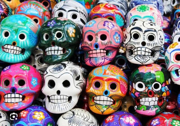 in the style of Day of the Dead. Mexican style skull. "Like coco the movie"